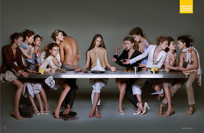 Like this French artist who has the Last Supper and Judas is apparently the man in a sea of ugly French chics. Most men paint Judas as something satanic, but apparently lesbian women paint Judas as enticing in having plumbers butt crack.