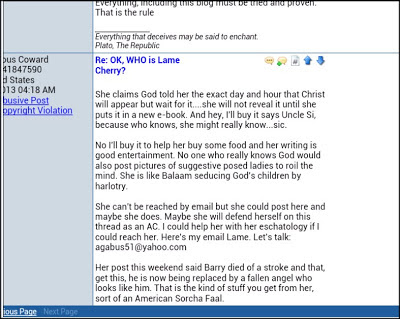 That should help in the accusers smearing me, but I really should not be expected to write this blog, and then provide the satanic talking points to those who will be Judged for getting in the way in God's workings of this blog for attacking me..